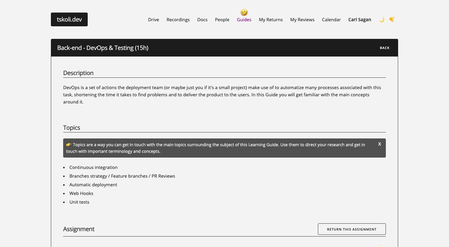 To support the all new web development course we launched at Tækniskóli, the need for a Peer Assessment system emerged since that is one of the pillars of evaluation in the program. Other functionalities were needed too: Documentation files, People section, Recordings section, important links, etc.